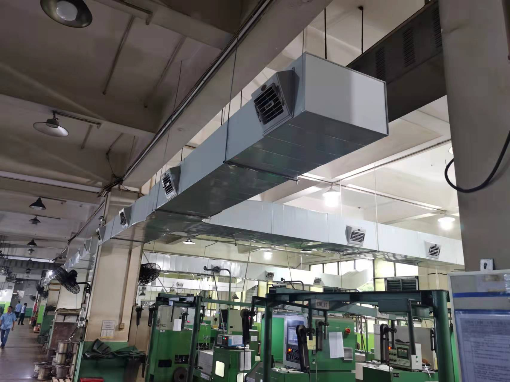 工厂厂房车间内安装了润东方环保空调以后,能够使车间温度快速降低4-10度,在降温的同时还能通风换气、防尘、除味,有效改善车间工作环境,